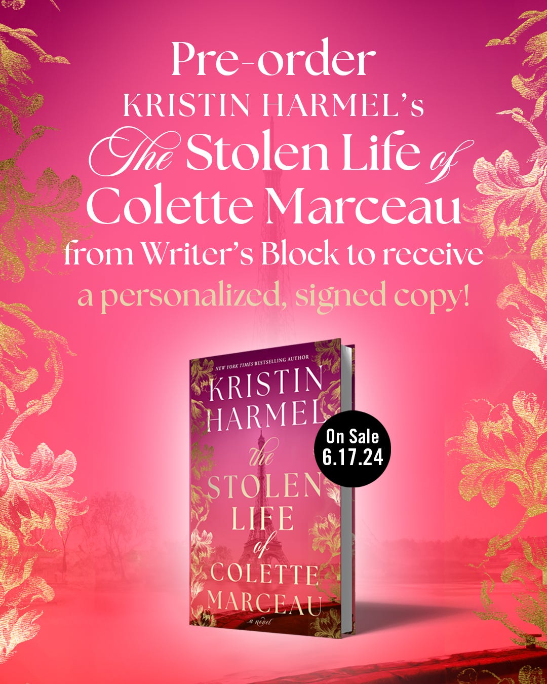 In just three weeks and three days (but who's counting?), my brand-new novel, THE STOLEN LIFE OF COLETTE MARCEAU, will hit stores. But if you order before June 17 from my local bookseller, Writer's Block Bookstore, you can get your copy signed and PERSONALIZED!